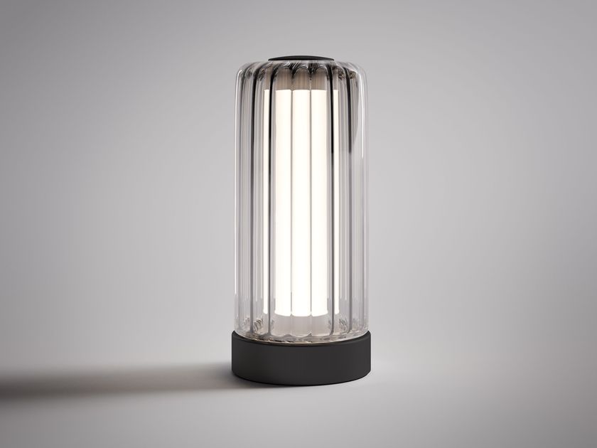 Table lamp made of borosilicate glass and metal