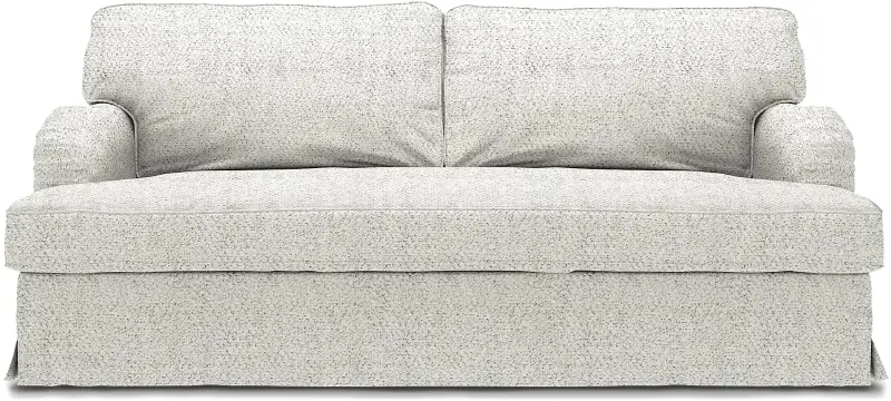 This style includes 4 pieces: 1 frame cover, 1 seat cushion cover / bench cushion cover and 2 backrest covers. It’s designed to only fit the IKEA Stocksund 3 seater sofa. This model features one cover enveloping the backrest, armrests and base frame. The cover is fastened in place along the backrest frame and armrests with velcro and a zip along the back of the sofa. The skirt features petite boxpleats at corners and is designed to skim the floor. Seat cushions are enclosed in a single, oversized seat cushion cover which is softly padded to avoid any creases between the inserts creating a luxe, custom look. Fitting instructions: Rremove the original covers along with the seat and backrest cushions. Drape the cover along the back and over the armrests. Gently pull the cover over the frame. The cover is designed for the perfect neat fit, so adjust both sides of the backrest and armrests simultaneously making sure that the seams are aligned. The base frame cover is secured with velcro along the backrest and armrests. Make sure the seams are aligned along the base frame and that the boxpleat hits the corner of the frame covering the legs. The skirt is designed to skim the floor. When the base frame cover is in place, close the zip on the back of the sofa. Place both seat cushions inside the single bench cushion cover, zip and put in place. The padding is designed to prevent visible creases between the cushion inserts creating the illusion of one oversized seat cushion. Place the backrest cushions inside the backrest cushion cover, zip and put in place.