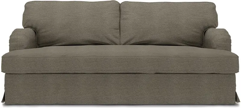 This style includes 4 pieces: 1 frame cover, 1 seat cushion cover / bench cushion cover and 2 backrest covers. It’s designed to only fit the IKEA Stocksund 3 seater sofa. This model features one cover enveloping the backrest, armrests and base frame. The cover is fastened in place along the backrest frame and armrests with velcro and a zip along the back of the sofa. The skirt features petite boxpleats at corners and is designed to skim the floor. Seat cushions are enclosed in a single, oversized seat cushion cover which is softly padded to avoid any creases between the inserts creating a luxe, custom look. Fitting instructions: Rremove the original covers along with the seat and backrest cushions. Drape the cover along the back and over the armrests. Gently pull the cover over the frame. The cover is designed for the perfect neat fit, so adjust both sides of the backrest and armrests simultaneously making sure that the seams are aligned. The base frame cover is secured with velcro along the backrest and armrests. Make sure the seams are aligned along the base frame and that the boxpleat hits the corner of the frame covering the legs. The skirt is designed to skim the floor. When the base frame cover is in place, close the zip on the back of the sofa. Place both seat cushions inside the single bench cushion cover, zip and put in place. The padding is designed to prevent visible creases between the cushion inserts creating the illusion of one oversized seat cushion. Place the backrest cushions inside the backrest cushion cover, zip and put in place.