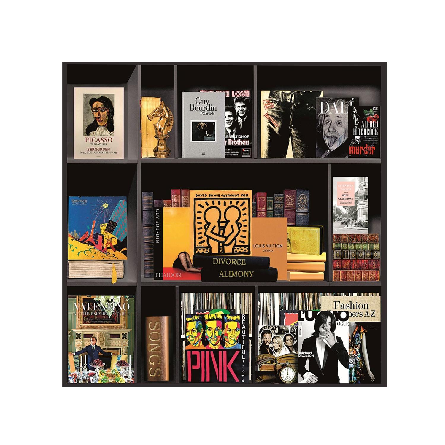 Printed onto sleek plexiglass, this vibrant artwork brings together a mix of music, fashion, and art in an eclectic bookshelf. From Pink! To the Rolling Stones, Albert Einstein to Picasso there's always something new to spot in this lively piece, a bold and graphic addition to any home. Story Of My Life Part 1, Plexiglass Artwork, 150cm x 150cm - Andrew Martin