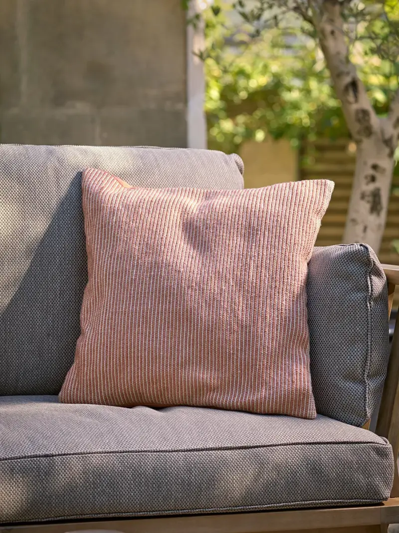 Softly refined and effortlessly inviting, our Stratos Pinstripe Outdoor Cushion brings the warmth and comfort of your interior to your garden seating. The subtle stripe pattern in muted rose tones offers a gentle, understated design, creating a look that feels both timeless and contemporary.Woven from durable, showerproof fabric, it's designed to withstand outdoor living while retaining a beautifully soft texture. Perfect for layering with complementary tones or mixing with bolder patterns, it brings an elevated, curated finish to any outdoor lounge space.