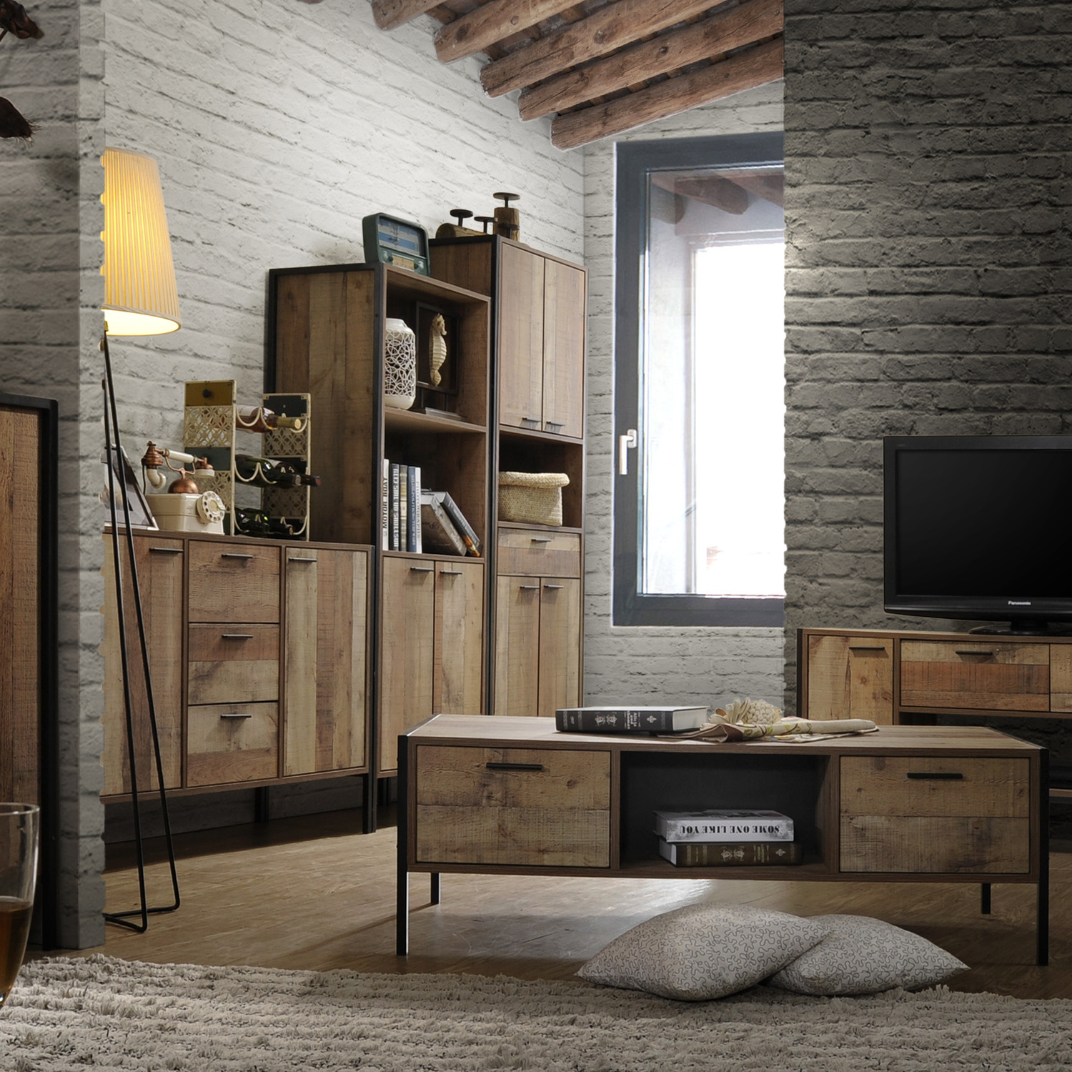 The Stretton range is a modern take on the urban trend of homely industrialised materials being made into furniture. In distressed rustic pallet look oak effects, we have created all the furniture pieces you need to transform your home into a rustic wonderland. This Stretton Living Room set includes: 2 Door 3 Drawer Sideboard, TV Cabinet & Coffee Table. All flat-packed with easy home self-assembly instructions.