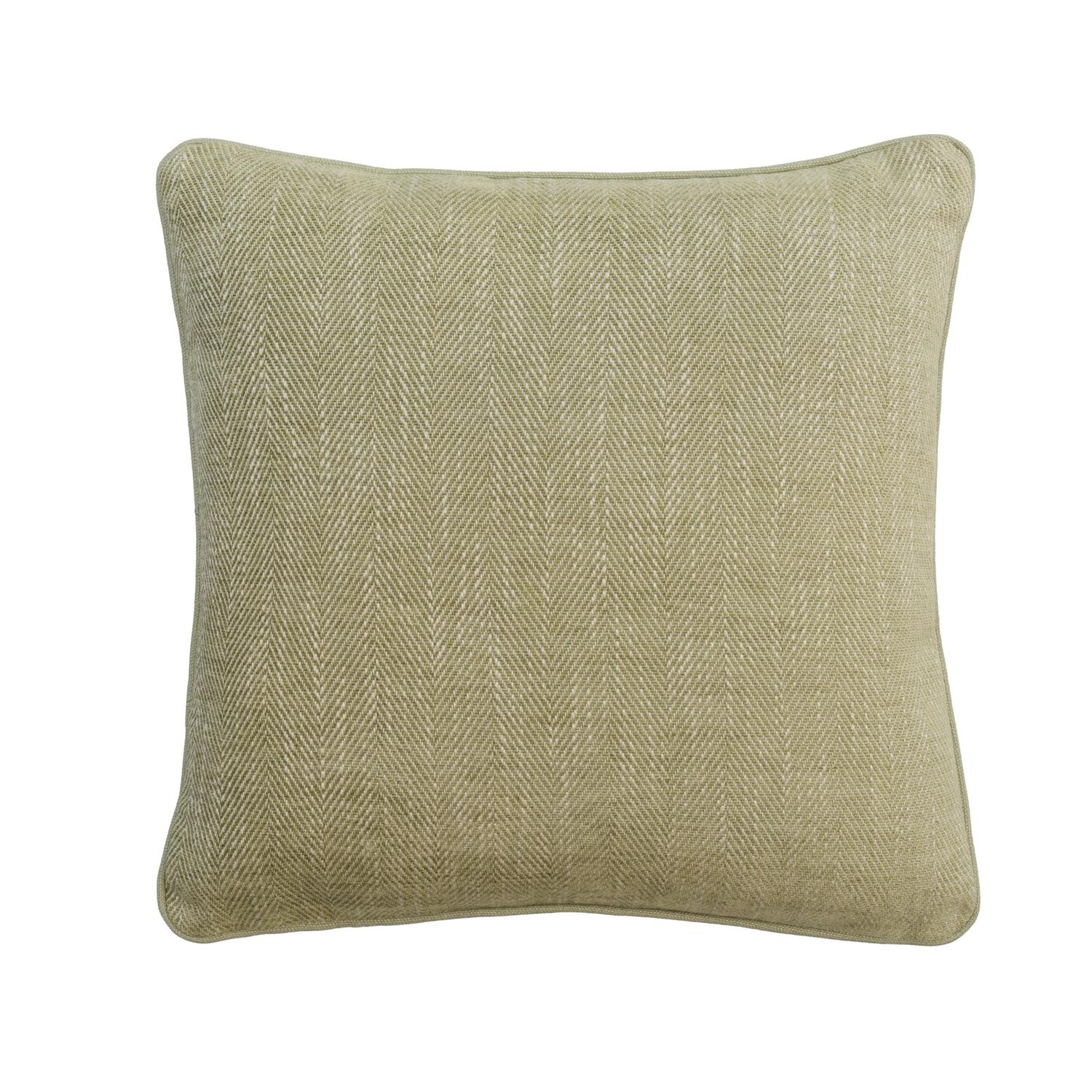 An exceptionally soft chenille cushion made from Summit Sage, a two-tone herringbone in golden ginger hue and piping in Rocco Sage. Summit Sage, Sustainable Feather, Cushion, 55cm x 55cm - Andrew Martin Viscose Blend Herringbone & Plain & Weave