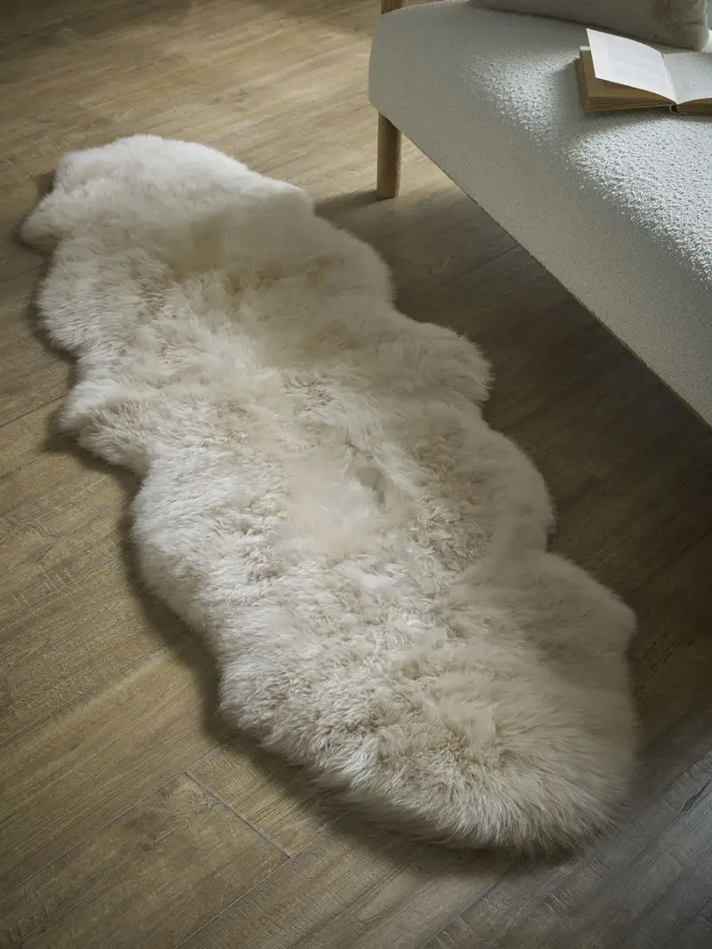 In a generous size that's perfect for placing alongside your bed, this luxurious sheepskin rug is made up of two skins of wonderfully tactile, long pile sheepskin.Cosy and inviting, it's the obvious choice of rug for the cooler seasons.