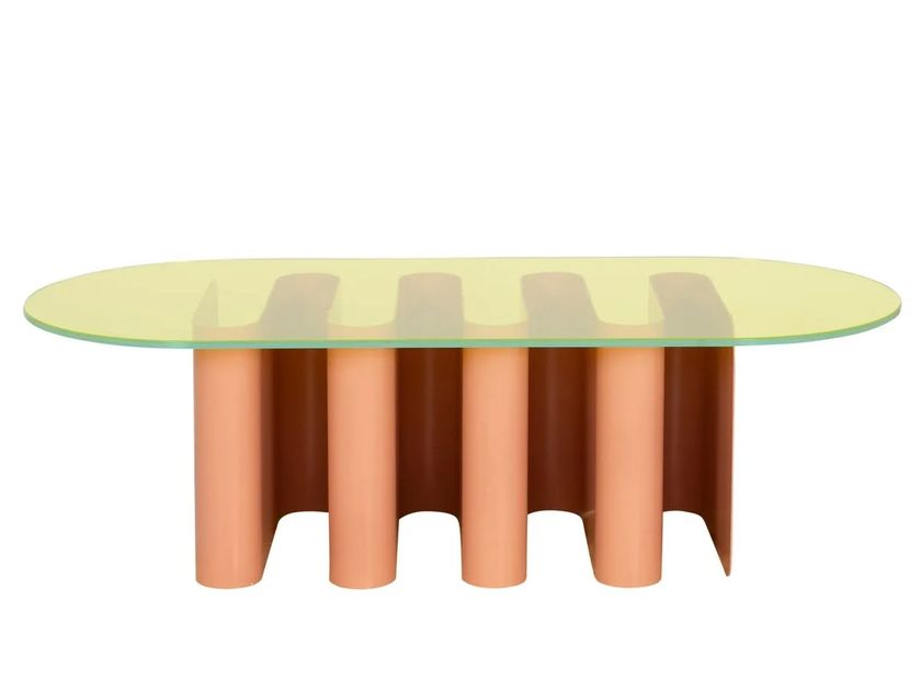 Oval glass and aluminium coffee table