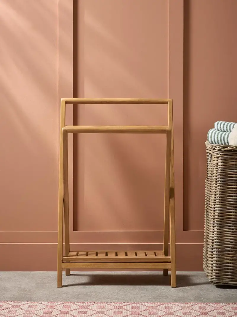 The perfect place for hanging your towel after a luxurious bath, this towel rail is crafted in a natural teak, for a beautifully simple look that works in a variety of homes.