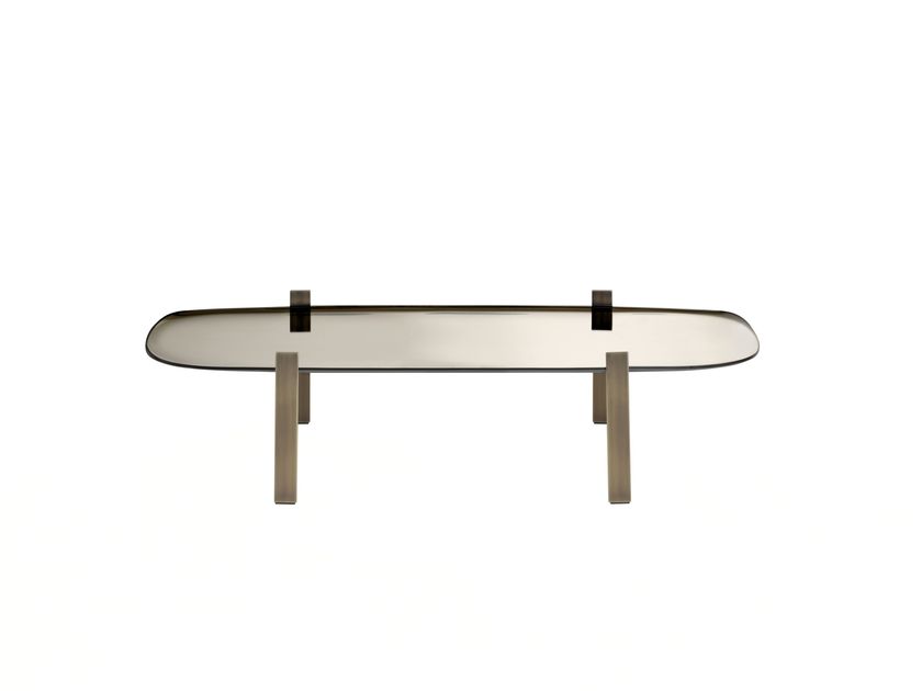 Rectangular low crystal and steel coffee table