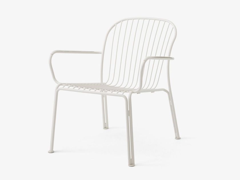 Powder coated steel low lounge chair with armrests