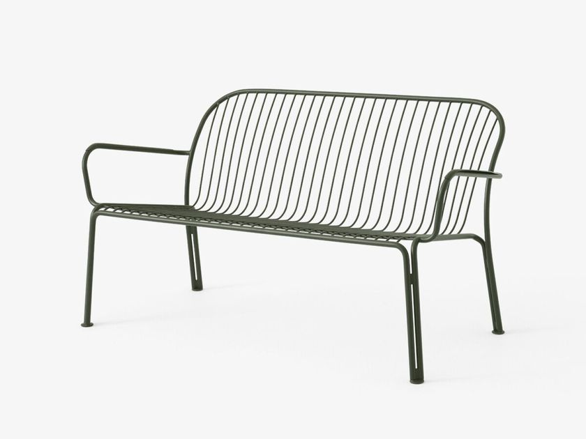 Powder coated steel garden bench with armrests with back