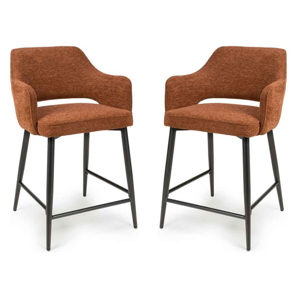 Tipton Rust Fabric Counter Bar Chairs With Black Legs In Pair