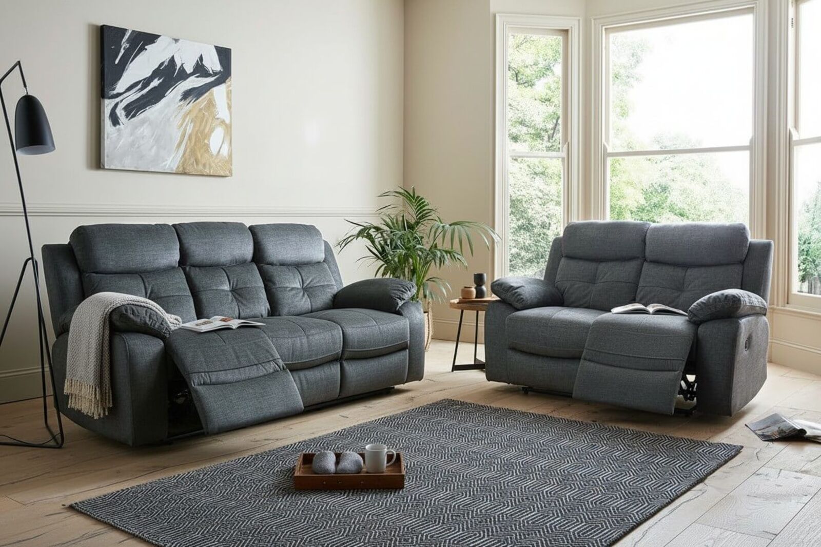 We have been looking around for a while, and we really love this Toronto 3 2 Seater Reclining Sofa Suite Dark Grey Fabric.