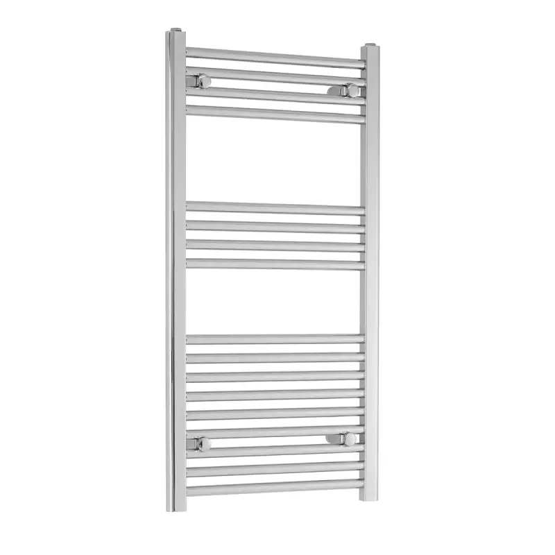 This chrome-coloured Heating Style Blythe Towel Rail 1400x600mm has a vertical design with horizontal ladder rails that is capable of heating your desired room, whilst also providing an ideal surface to dry and warm multiple towels simultaneously. Different from other ladder towel rail bars which are 19mm in diameter, our towel rail bars have a diameter of 22mm. This means that this radiator is capable of holding a larger volume of hot water, whilst maintaining the same height and width. Therefore, you get a greater BTU heat output without compromising on the height and width dimensions of the towel rail! This makes it a perfect bathroom towel rail radiator, although the reflective chrome finish of the towel rail means that it is a stylish heating option for any room of your choice. Specifications Colour: Chrome Material: Steel Guarantee: 5 years Dimensions: H1400 x W600mm Distance from wall when mounted: 65-75mm Towel rail bar: 22mm Heat output: 1505 BTU Pipe centres: 555 mm Can be duel fuel with a T piece and electric element Questions? See Our Ultimate Radiator Buying Guide