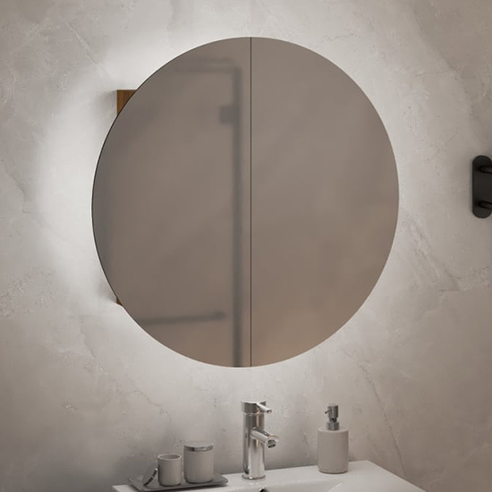 Trail Small Bathroom Mirrored Cabinet In Oak With LED, Keep your make-up essentials organised and neat with this trendy bathroom cabinet with a round mirror and a LED string! FEATURES : Material : Engineered Wood, Glass, PVC (Polyvinylchloride), Copper Finish : Oak Light Colour : Oak Trail Small Bathroom Mirrored Cabinet In Oak With LED The engineered wood is of exceptional quality with a smooth surface and also features strength, stability and resistance to moisture Made of engineered wood, the LED mirror cabinet is easy to clean A beautiful mirror provides a view for makeup application and adds an elegant touch to the bathroom mirror cabinet The wall cabinet has a LED string, which is equipped with a USB interface, making it very convenient to use This jewellery mirror cabinet features large compartments, which offer places for your items and keep everything in its place The LED bathroom mirror cabinet can be wall-mounted. That way, you can maximise your floor space and keep the area clean Each product comes with an assembly manual in the box for easy assembly Screw and plug for inside the wall are not included Seek and use screw and plug suitable for your walls If you are uncertain, seek professional advice Read and follow each step of the instruction carefully This has a USB connector and the 5V USB adapter is not included Available at an affordable price Images shown are for illustration purpose only DIMENSIONS : Height : 17. 5cm Width : 40cm Depth : 40cm Mirror Diameter : 60cm USB Cable Length : 1m