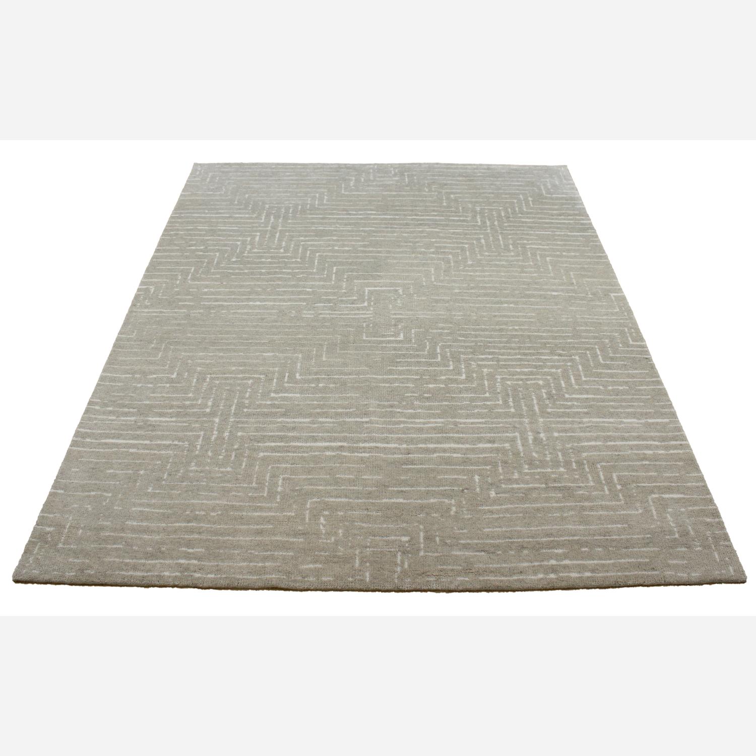 Geometric woollen rug in natural Escape the mundane through the maze-like design of Traverse, a plush medium pile woollen rug in neutral tones. Hand tufted and soft to the touch, this rug brings warmth and comfort to any floor. Please note: In the first few weeks of use, you will see some naturally occurring, light shedding of wool fibre. Simply vacuum your rug without a brush attachment and this will cease. Traverse Natural, Rug, 9' x 12' - Andrew Martin
