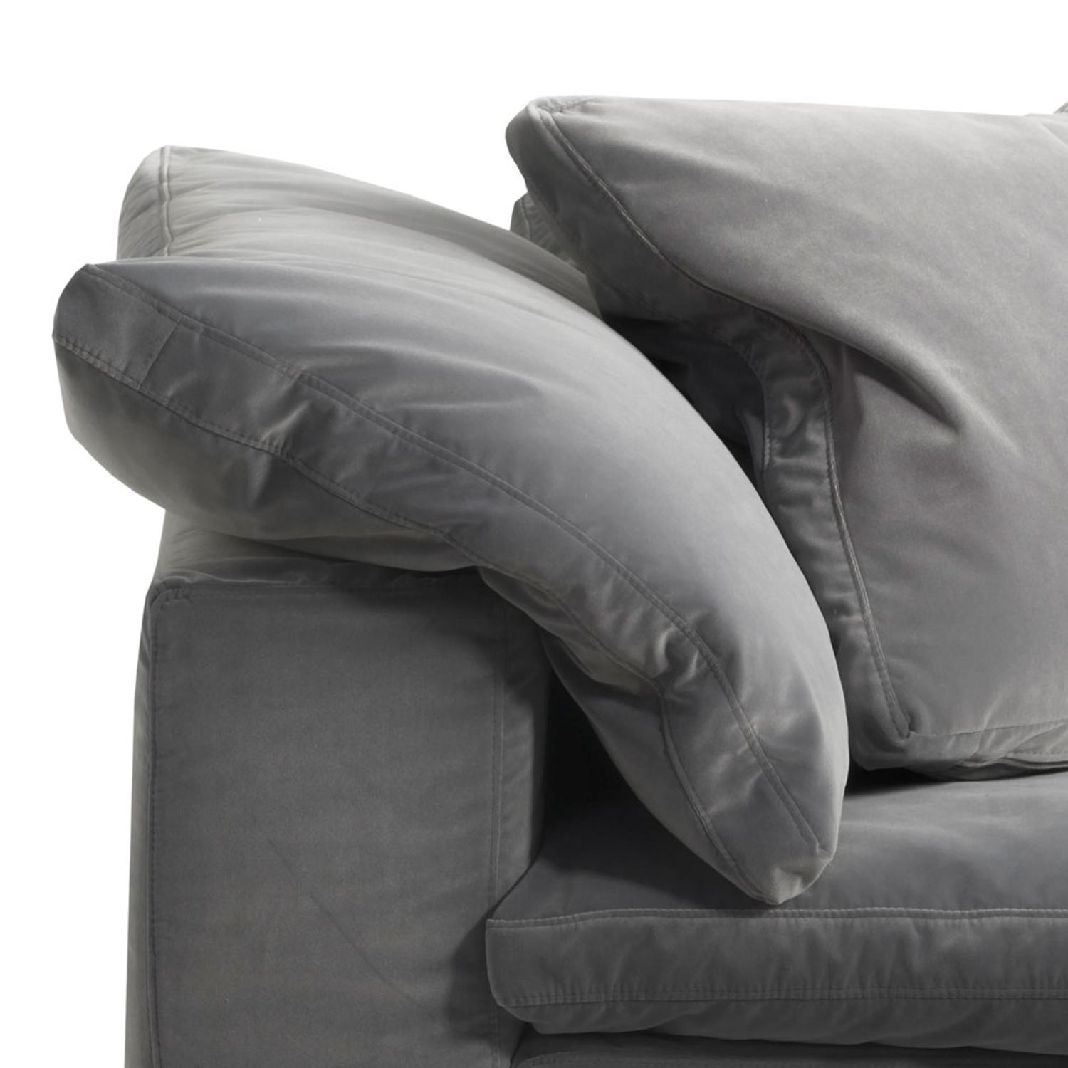Luxury sofa in grey velvet A relaxed and welcoming sectional sofa in a soft and luxurious grey velvet, with a triple layer of goose feather and down mix cushions ideal for sinking into at the end of the day. Truman Junior allows you to create the perfectly sized and shaped sofa within a smaller space. Truman Junior Villandry Peregrine - Andrew Martin