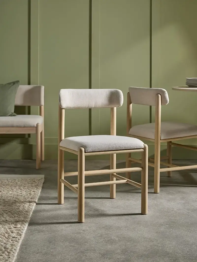 Create the ultimate dining experience with our set of two Aalborg dining chairs.A modern frame with rounded legs is crafted from blonde oak and plywood, whilst the upholstered seat pads offer a comfortable place to land - especially with the curved back rest, which is sure to give plenty of support!