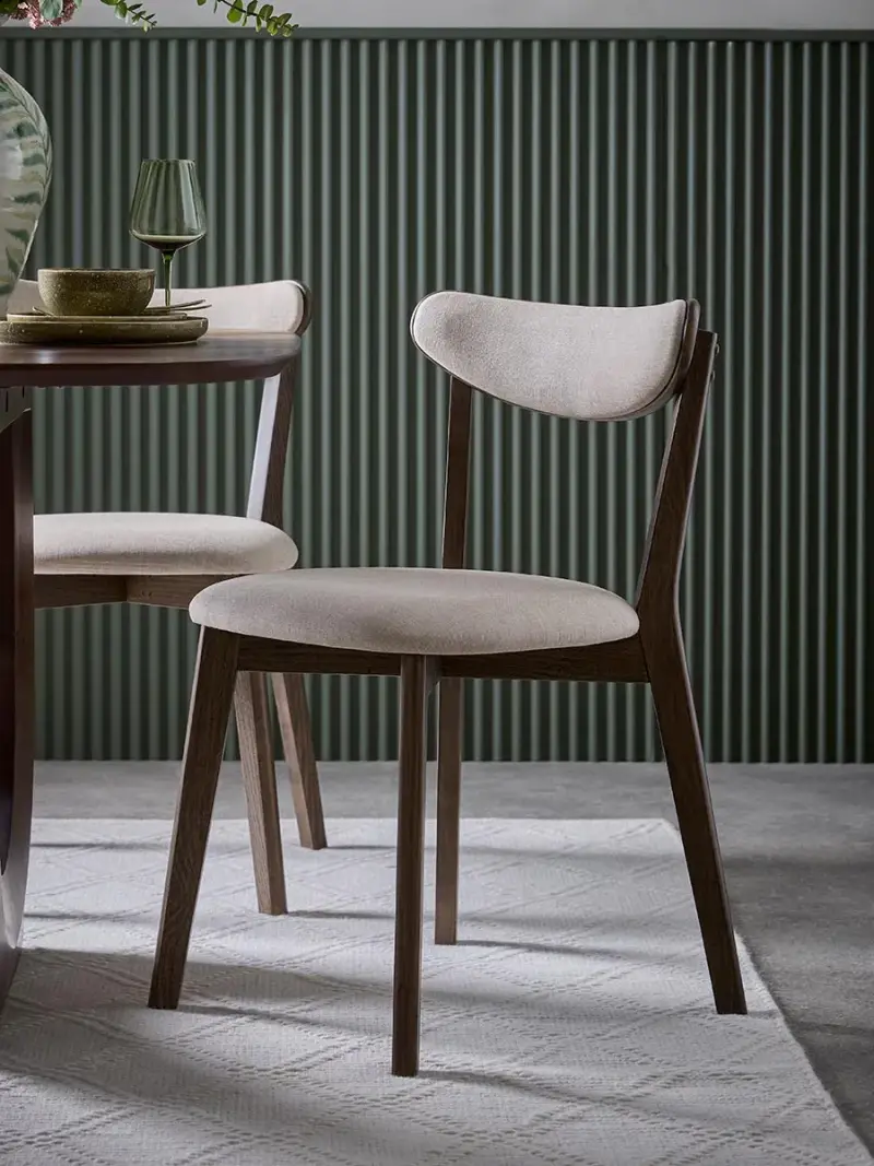 Introduce contemporary style to your dining space with our two Reina Dining Chairs.Their softly curved frames and upholstered seats offer comfortable, supportive dining, while the sculpted backrest adds a refined, modern detail. The light oak finish brings natural warmth and versatility, making these chairs easy to pair with a wide range of dining tables and interior styles.