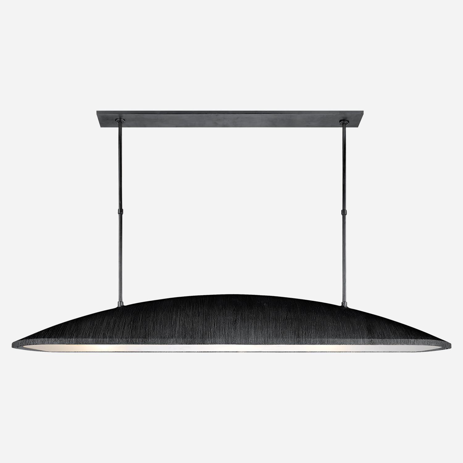 Utopia, designed by Kelly Wearstler, draws inspiration from the Californian coast. Transforming the landscape's topographic textures and organic forms into carved, striated metal of different finishes, this linear pendant lends itself to unlimited decorative possibilities. Perfect for a statement centrepeice above a kitchen island or dining table. Utopia Pendant Iron, Pendant Light, Aged Iron - Andrew Martin