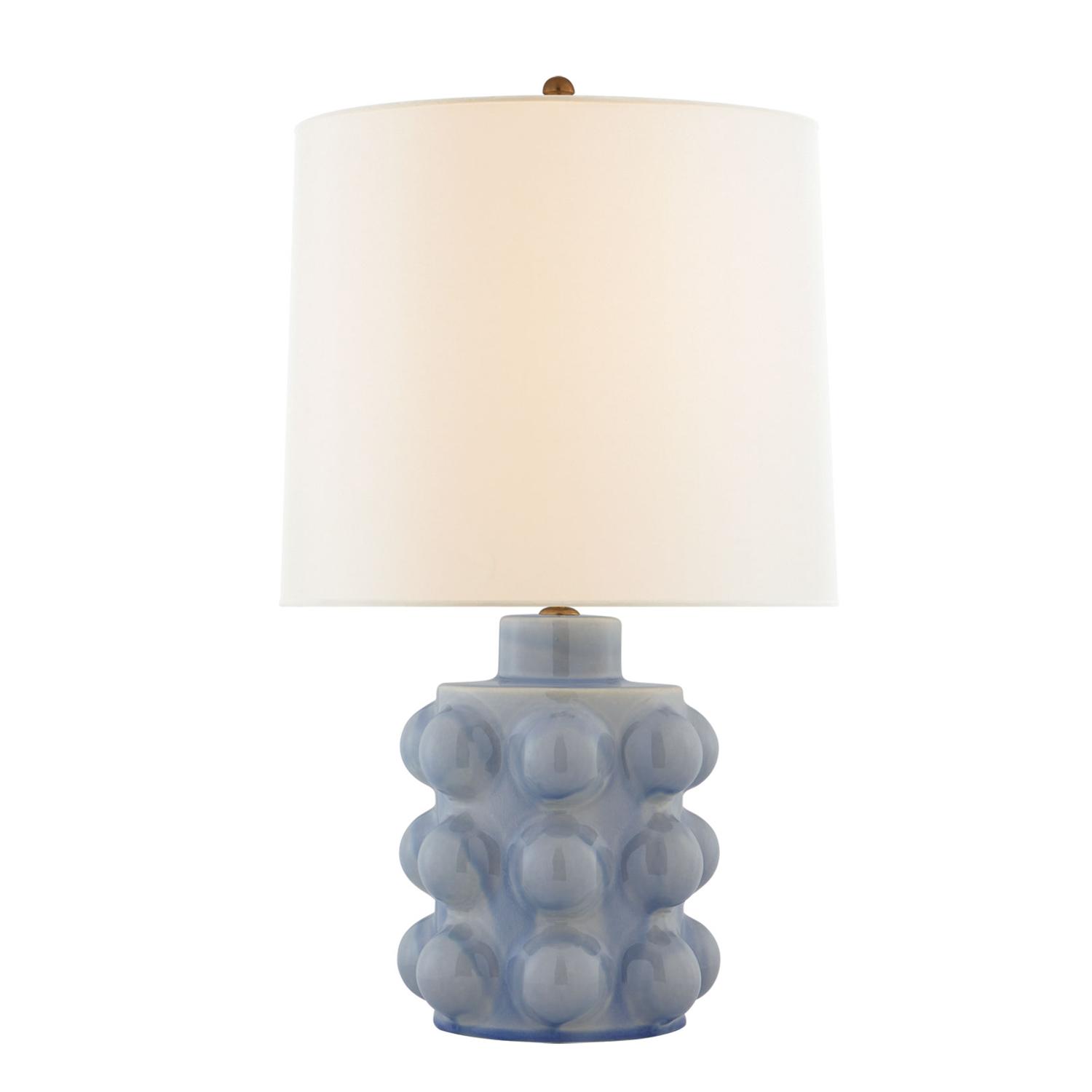 This playful lamp boasts a fun sculpted base that turns a functional piece into an eye-catching statement. The textured polar blue crackle ceramic finish compliments the playful nature of this lamp, which is neatly finished with a simple linen shade. Vedra Table Lamp Polar Blue Crackle, Table Lamp - Andrew Martin