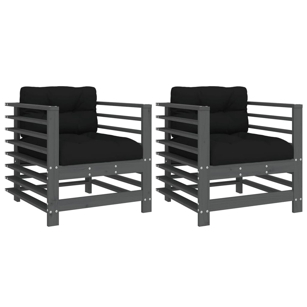 Velaro Garden Grey Solid Pinewood Armchairs With Black Cushions In Pair