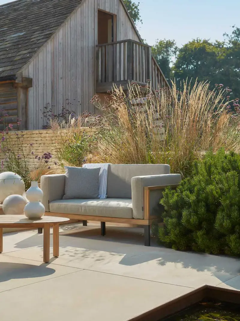 The boxy silhouette of our striking Vichy Sofa gives it a contemporary appeal that will bring a Tuscan Villa feel to your deck or terrace. Acacia wood frames in a light teak finish make up the body of the sofa, which has contrasting anthracite steel legs and welcoming cushions in a warm neutral tone. Place in a smaller area of your garden, or add to our Vichy Lounge Set for extra seating. Click here to view our useful Outdoor Furniture Buying Guide. Click here for our outdoor furniture care guide.
