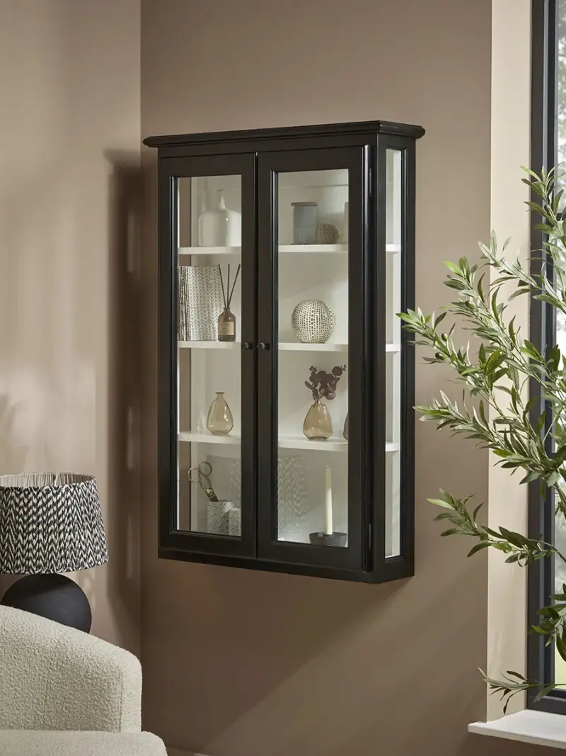 When floor space is minimal, but you want to display your finest accessories, our Victoria Wall Cabinet offers the perfect solution.A black frame is contrasted with a white interior, creating a perfect place to allow small vases and trinket bowls to stand out and be displayed beautifully.