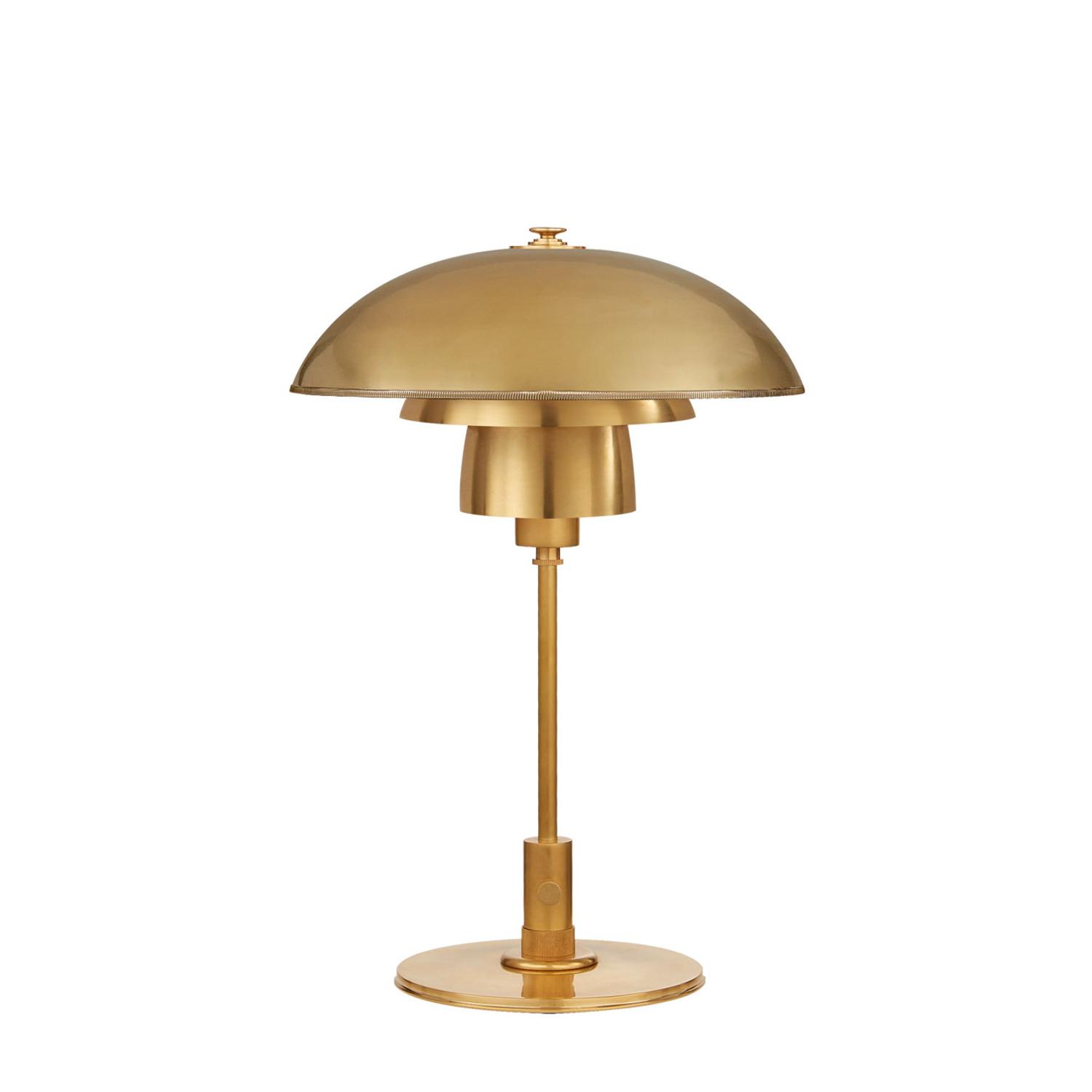 Desk lamp in hand-rubbed antique brass. Crafted by Thomas O’Brien, with a nod to Art Deco style and enough quirk for modern interiors too. Whitman Table Lamp Brass, Desk Lamp, Antique Brass - Andrew Martin