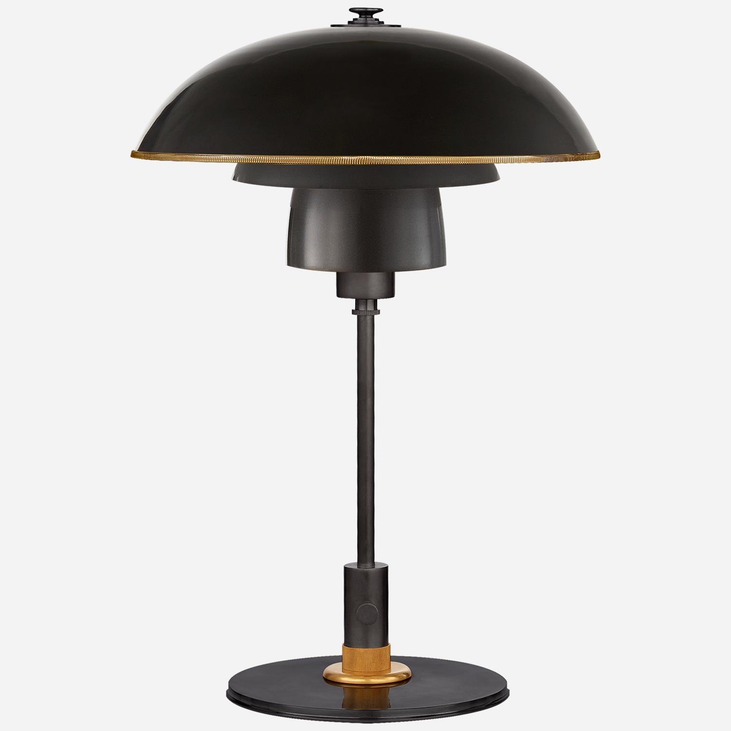 Desk lamp in smart black bronze with antique brass detailing. Crafted by Thomas O’Brien, with a nod to Art Deco style and enough quirk for modern interiors too. Whitman Table Lamp Bronze, Desk Lamp, Bronze/Antique Brass - Andrew Martin