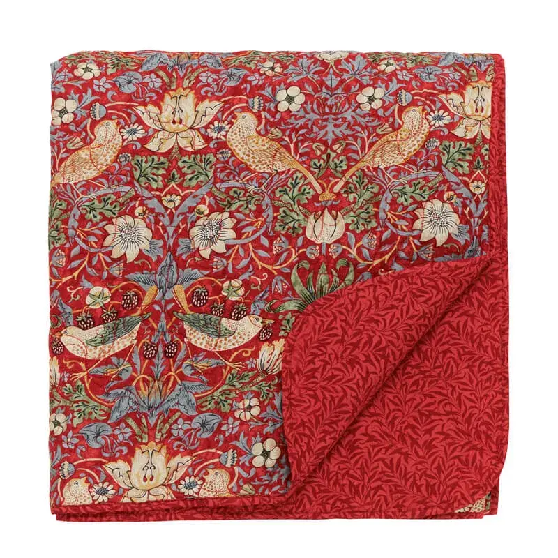 William Morris Bedding Strawberry Thief Bedspread Crimson
