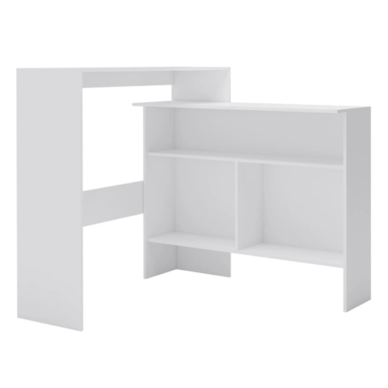 This bar table is both functional and stylish, which will make a practical and captivating addition to your interior. FEATURES : Material : Chipboard Finish : White The special design of the high table makes it a timeless accessory for your living space Thanks to the sturdy chipboard construction, the side table is highly durable, stable and easy to clean The table tops will provide ample space for you to place your drinks, vases or other decorative items The bar table is easy to assemble Inner table is movable Available at an affordable price Images shown are for illustration purpose only TOTAL DIMENSIONS : Height : 120cm Width : 130cm Depth : 40cm INNER TABLE DIMENSIONS : Height : 100cm Width : 124cm