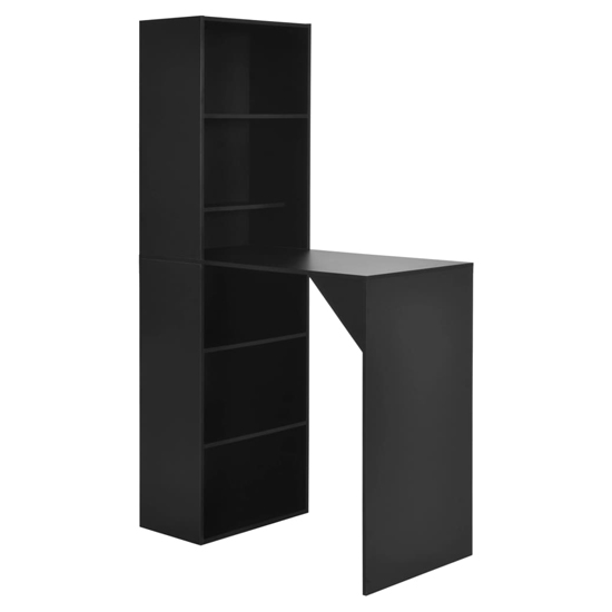 This bar table is the perfect choice to prepare and enjoy drinks for small flats or where space is a little limited. Its contemporary design makes the table a chic addition to your kitchen or dining area. FEATURES : Material : Chipboard Finish : Black The construction of large storage cabinet will save you plenty of space that you can put bottles of wine or other items on Thanks to the sturdy chipboard, it is exceedingly durable, stable and easy to clean The L-shaped frame gives the table optimum stability. You will surely feel more comfortable and enjoyable to sit beside this beautiful bar table when drinking wine or coffee With the ideal height and special design, this high table will certainly complete the decoration of your house With ample storage space Available at an affordable price Images shown are for illustration purpose only TOTAL DIMENSIONS : Height : 200cm Width : 115cm Depth : 59cm TABLE DIMENSIONS : Height : 107. 5cm Width : 115cm Depth : 59cm CABINET DIMENSIONS : Height : 200cm Width : 59cm Depth : 35cm