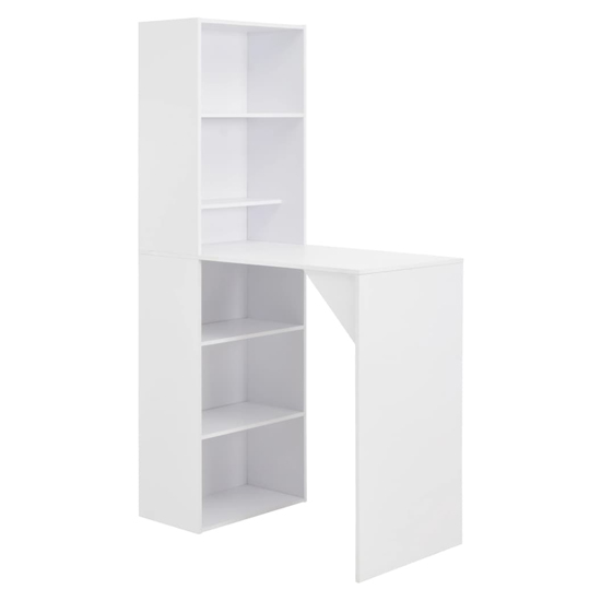 This bar table is the perfect choice to prepare and enjoy drinks for small flats or where space is a little limited. Its contemporary design makes the table a chic addition to your kitchen or dining area. FEATURES : Material : Chipboard Finish : White The construction of large storage cabinet will save you plenty of space that you can put bottles of wine or other items on Thanks to the sturdy chipboard, it is exceedingly durable, stable and easy to clean The L-shaped frame gives the table optimum stability. You will surely feel more comfortable and enjoyable to sit beside this beautiful bar table when drinking wine or coffee With the ideal height and special design, this high table will certainly complete the decoration of your house With ample storage space Available at an affordable price Images shown are for illustration purpose only TOTAL DIMENSIONS : Height : 200cm Width : 115cm Depth : 59cm TABLE DIMENSIONS : Height : 107. 5cm Width : 115cm Depth : 59cm CABINET DIMENSIONS : Height : 200cm Width : 59cm Depth : 35cm