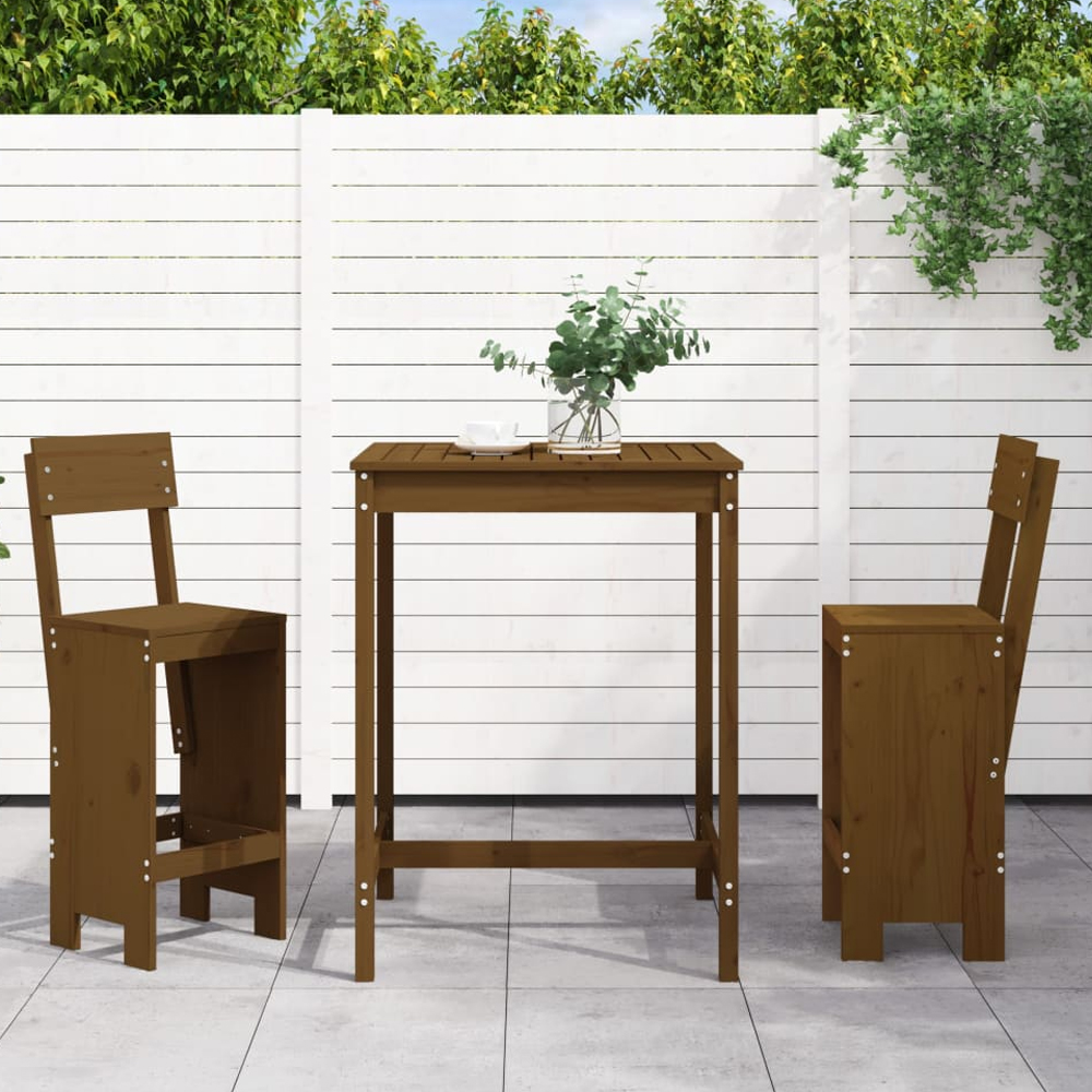 Xandor Garden Solid Wood Bar Table With 2 Stools In Honey Brown