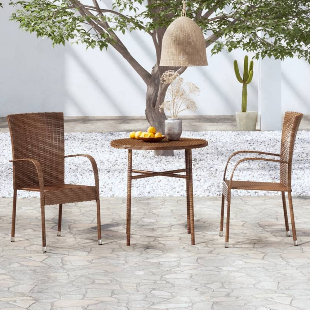 Enhance your outdoor living space with the Furniture in Fashion Yaviso Garden Poly Rattan Dining Table with 2 Chairs in Brown, a perfect blend of style, comfort, and compact functionality. Featuring a warm brown finish and elegant woven texture, this 3-piece dining set adds a natural and inviting touch to balconies, patios, and garden corners. Designed for durability and everyday outdoor use, this dining set is crafted with a powder-coated steel frame wrapped in weather-resistant PE poly rattan. The compact table is ideal for meals, drinks, or casual gatherings, while the lightweight chairs offer comfort and practicality. With a space-saving stackable design, its an excellent solution for smaller outdoor areas. The Furniture in Fashion Yaviso Garden Poly Rattan Dining Table with 2 Chairs in Brown offers a practical and stylish solution for compact outdoor spaces. With its durable construction, space-saving design, and modern look, its perfect for enjoying relaxed outdoor dining with comfort and ease. FEATURES: Material: PE Rattan, Powder-Coated Steel, PP board Finish: Brown Set Include: 1 x Dining Table, 2 x Chairs Enjoy a nice meal or afternoon tea in your outdoor space with this poly rattan garden dining set Featuring an elegant design, it will become the focal point of your garden and patio The practical outdoor dining set has a powder-coated steel frame covered with PE rattan, making it hardwearing, easy to clean, and suitable for daily outdoor use The table is excellent for keeping drinks and food within reach The chairs are lightweight and can be stacked to save space when not in use Note: To extend the life of your outdoor furniture, we recommend that you clean it regularly and do not leave it outdoors without protection unnecessarily Clean: Use a mild soap solution Storing: If possible, store in a cool, dry place indoors If the product is stored outdoors, protect it with a waterproof cover Wipe and dry the excess water or snow fro