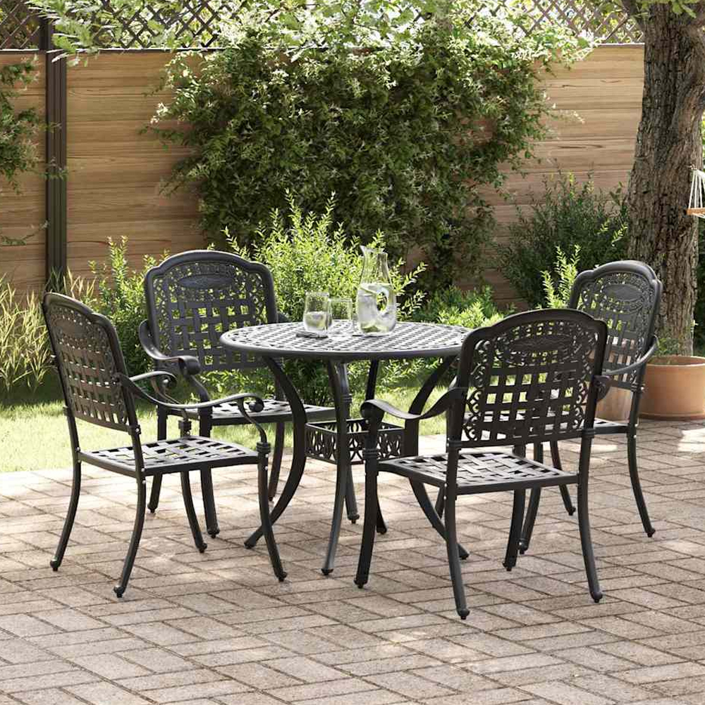 Create a modern and inviting outdoor dining space with the Zanaro Garden Aluminium Square Mesh Dining Table with 4 Chairs in Black by Furniture in Fashion. Designed with a sleek square profile and contemporary mesh detailing, this stylish dining set is perfect for patios, gardens, balconies, and terrace areas. The elegant black finish enhances its modern appeal, making it a versatile addition that complements a wide range of outdoor decors. Crafted from high-quality aluminium, this 5-piece dining set is built for durability and long-term outdoor use. Aluminium is widely valued for its lightweight strength, rust resistance, and low maintenance, making it ideal for all-weather conditions. The square table design provides a compact yet functional dining surface, comfortably seating four people while maintaining efficient use of space-ideal for smaller outdoor areas. The Furniture in Fashion Zanaro Black Aluminium Square Mesh Garden Dining Set offers a perfect blend of durability, space-saving design, and modern style. Ideal for smaller outdoor areas, it provides a practical and elegant solution for relaxed outdoor dining and entertaining. FEATURES: Material: Aluminium Finish: Black Set Include: 1 x Dining Table, 4 x Chairs This Cast Aluminium Garden Dining Set is a beautiful addition to any outdoor garden or terrace With a classic and traditional style, it seamlessly complements a range of outdoor themes, promising elegance and functionality with each use The set's Aluminium build not only enhances its aesthetic appeal but also ensures resilience It is tailored for warm-weather enjoyment and can accommodate any casual or formal outdoor dining experience, making it perfect for anyone who relishes outdoor entertaining The dining set is crafted entirely from Aluminium, renowned for its robustness and resistance to weather conditions This ensures that the set remains a durable investment for any garden or terrace space, while also being easy to maintain