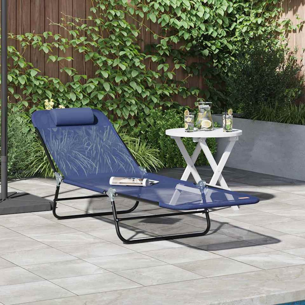Zavira Garden Textilene Folding Sun Lounger In Navy Blue