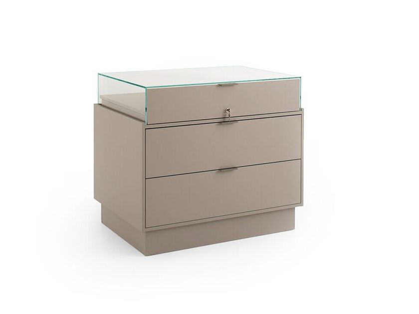 Glass display case with pull-out tray