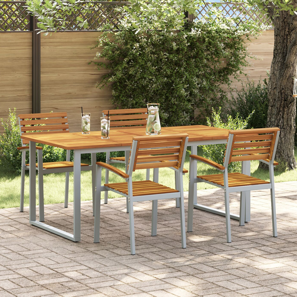 Zivora Garden Acacia Wood 180cm Dining Table With 4 Chairs In Grey And Brown